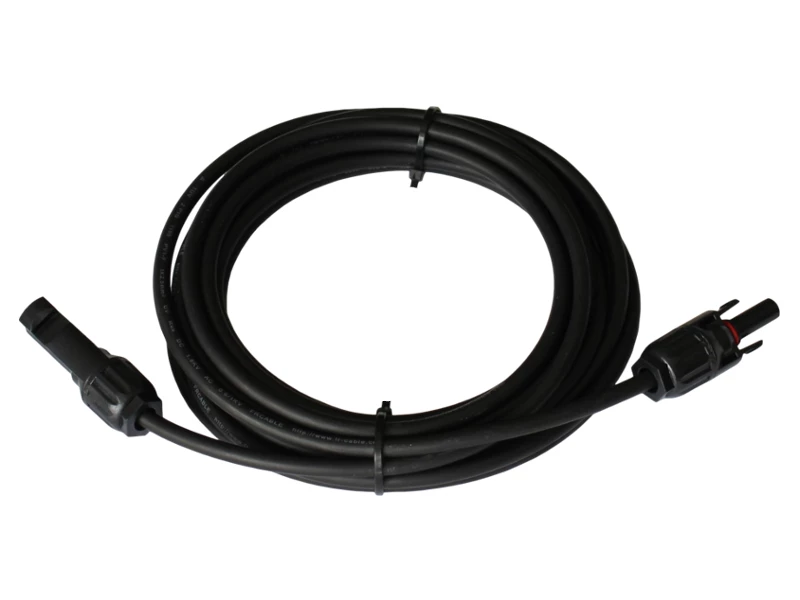 Solar-specific, UV-resistant extension cable with a 4mm² conductor cross-section for connecting solar panels. Supplied as a 5m length complete with male and female solar connectors terminated on the cable ends. These solar connectors are compatible with MC4 connectors.