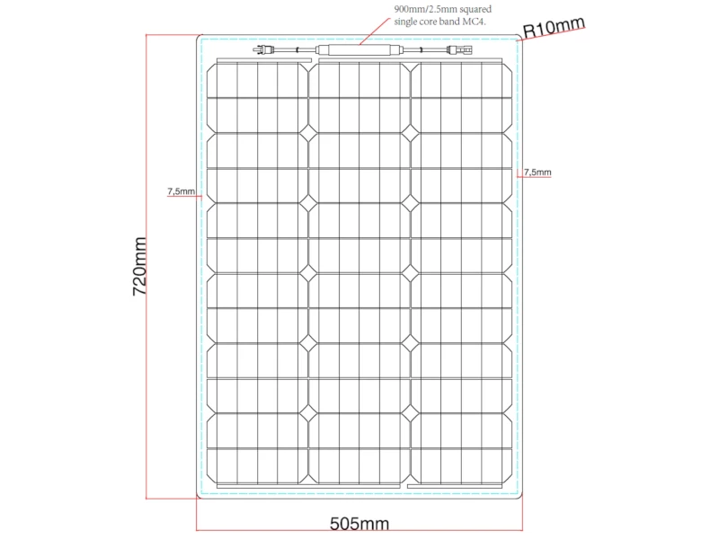 This panel comes pre-fitted with two 0.9m lengths of solar-specific, UV-resistant cable that is designed to perform well even at high temperatures, with minimal power losses. The cables are terminated with male and female MC4-compatible solar connectors, allowing you to connect to other panels or to extension cables. Alternatively, these connectors can be cut off to enable the cable to be fitted to the screw-clamp terminals of a solar charge controller.