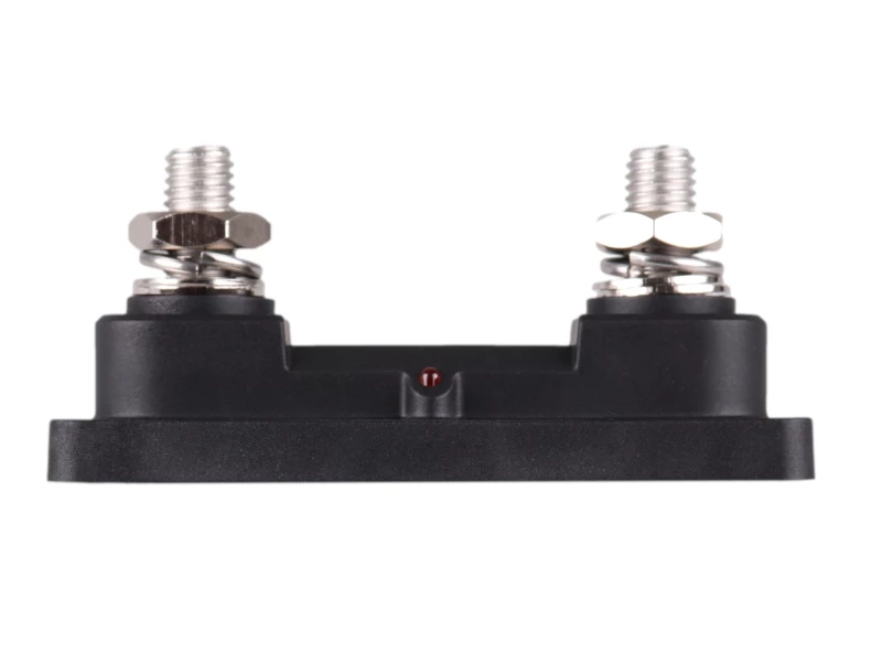 The fuse and cable terminals are secured using 2 x M10 studs, nuts and lock washers . The base has 4 mounting holes and fixing screws are included.