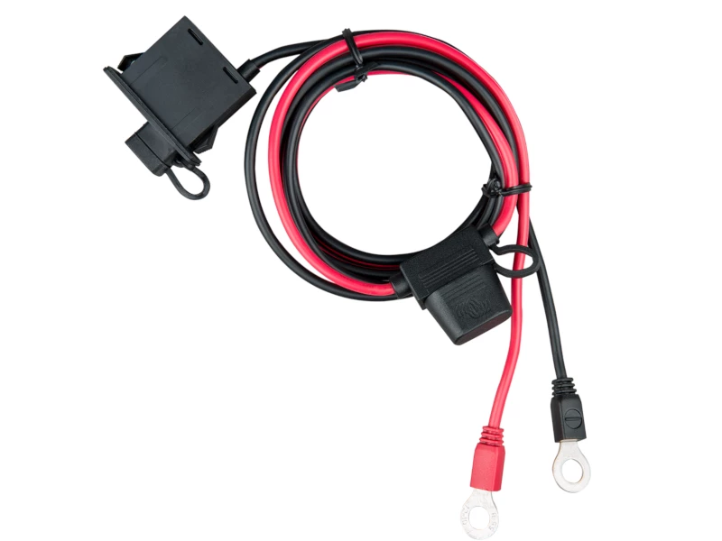 This IP65 charger accessory is useful if you have a hard-to-reach battery as you can leave the eyelets permanently connected to the battery and just plug the charger into the panel-mounted connector when required.