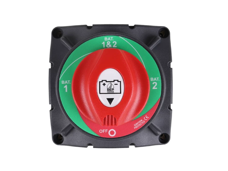 This 721 Heavy Duty Battery Selector Switch from BEP is a robust switch for larger vessels and higher current systems. It can be used to changeover the loads and charging sources between 2 batteries or to combine them and the switch selector positions are OFF/ 1 / 1+2 / 2. To provide flexible installation options, the switch can be recess-mounted or surface mounted and fits into the same contour locking system as found in BEPs battery distribution system.