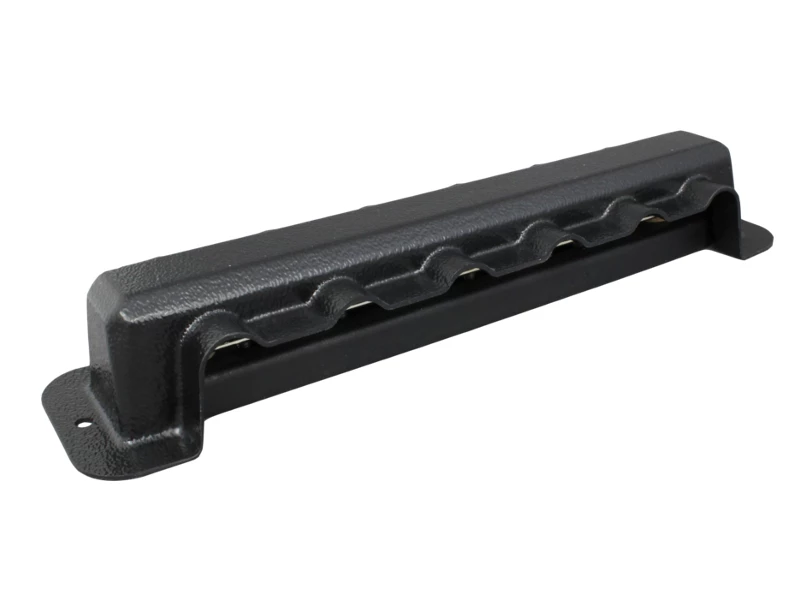 Tough, impact-resistant ABS moulded cover to fit our extra long 150A busbars (2 studs/20 screws and 6 studs) and protect them against accidental shorting and damage to the terminals. Can be secured via the two 5mm dia holes at each end.