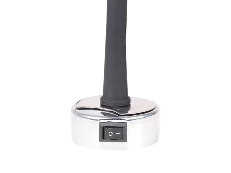 The flexible neck is finished with a soft-touch matt black rubberised cover which compliments the chrome-effect head and base. The 1.5W LED produces a warm white light and a micro rocker switch is fitted in the base.