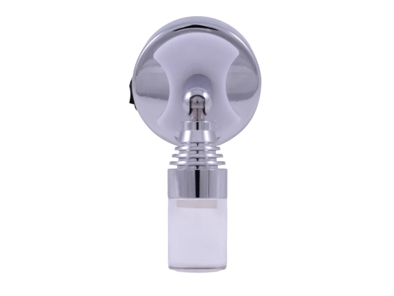 The light has a sturdy metal, chrome-plated body. It’s fixed through the base via 2 screws (not supplied) that are then hidden by a rotating plastic cover and connection is via flying leads.