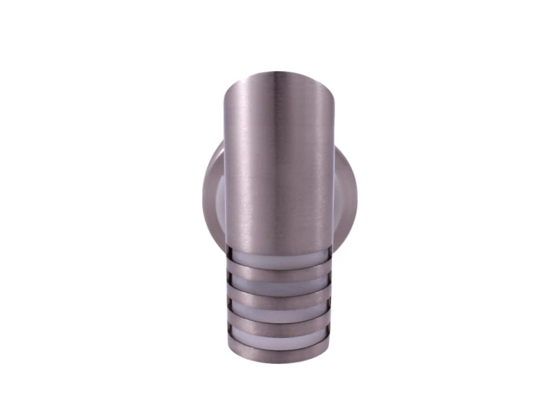The light has a sturdy metal, brushed-nickel effect body. It’s fixed through the base via the 2 supplied screws (that are then hidden by a rotating plastic cover) and connection is via flying leads.
