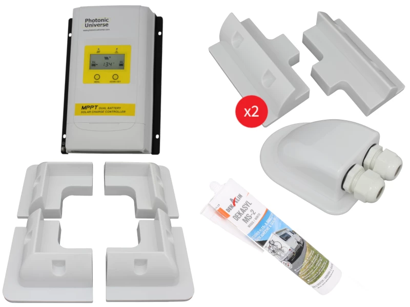 This kit contains everything you’ll need to install a rigid framed solar panel to your caravan, campervan, motorhome or boat. Included is an MPPT controller to make sure you maximise the amount of energy obtained from your solar panels, mounting brackets, cable gland and polyurethane adhesive/sealant.