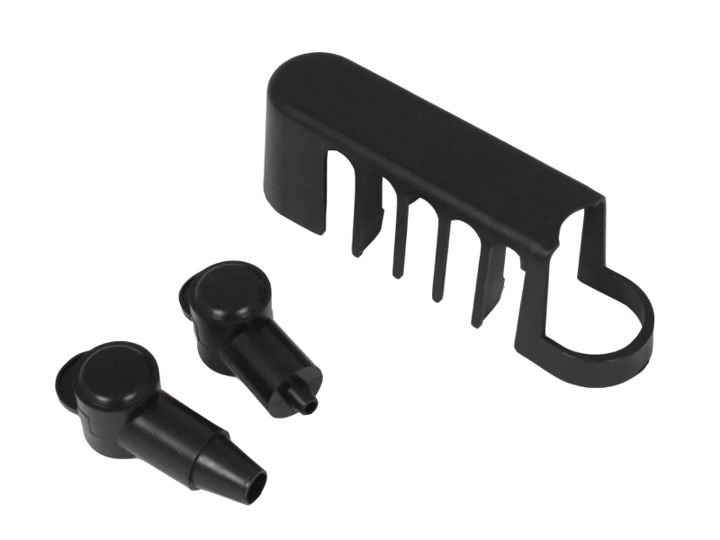 Insulating cover kit to protect against accidental shorts when using VTE 120A tab terminal busbars P01550 & P01552. The kit consists of a colour-coded cover for the busbar tab terminals and two colour-coded covers for the main connection post (to suit various feed cable sizes – max. 16mm²).