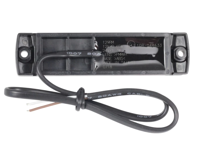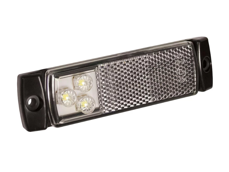 LED Autolamps 129 Series low profile front outline marker / reflector light. This slimline white marker light features a reflex reflector, is only 13mm deep and is shock, water and dust proof. The dual voltage capability also means it can operate on either a 12V or a 24V system.