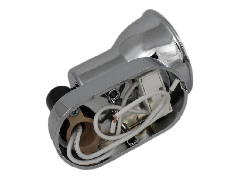 Mini 12V spot light fitted with an MR16 2.5W LED bulb (equivalent effect to a 16W halogen bulb) for use in motorhomes, vans, campervans, caravans, boats etc. Plastic body with a chrome plating and featuring a 58mm diameter tilt and swivel head (approx. 300° swivel and 90° tilt) with a black on/off switch.