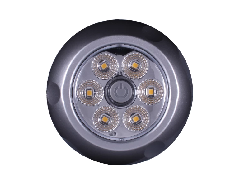 This light can be powered from either a 12V or 24V DC battery system and the tilt facility allows the light to be directed straight down or slightly to either side. The unit can also then be rotated to angle the light in any direction. The chunky rubber on/off button makes it easy to operate and the 6 LEDs produce an output which is equivalent to a traditional 30W incandescent bulb.