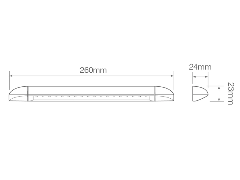 23 Series awning light from LED Autolamps with a 240lm output. This 12V light is fully waterproof and designed for installation on a vertical surface to provide a downward pointing, wide spread of light that is required in awnings or other areas alongside a vehicle. The LED unit is fully sealed with a clear silicone lens and the light has a low profile depth of only 24mm so it doesn’t protrude too far from the vehicle. This light is also ideal for mounting internally on a rear panel under lockers and shelves to illuminate work surfaces below.