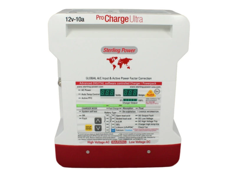 Award-winning Sterling ‘Pro Charge Ultra’ range of multi-stage digital battery chargers incorporate some of the very best charging technologies currently available. Sterling have long been at the forefront of charger development for the automotive and marine industries and the Pro Charge Ultra range is chosen by many of the World’s largest boat builders as standard equipment in new boats.
