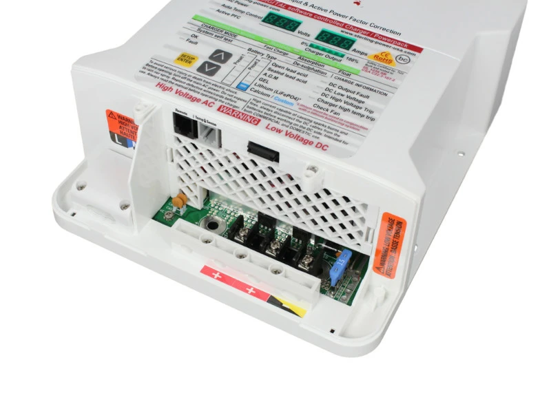 The sleek housing features a comprehensive front panel that displays a host of information, including output voltage & current, charger status, fault conditions etc. and the on-board software provides useful functions such as automatic desulphation, variable speed fan control and reduced power output (for low power mains sources and/or silent running).