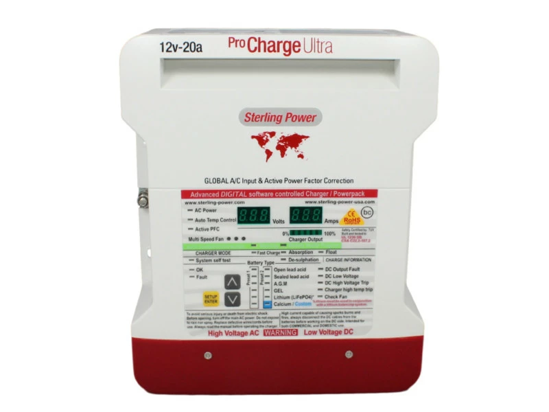 Award-winning Sterling ‘Pro Charge Ultra’ range of multi-stage digital battery chargers feature some of the very best charging technologies currently available. Sterling have long been at the forefront of charger development for the automotive and marine industries and the Pro Charge Ultra range is used by many of the World’s largest boat builders as standard equipment in new vessels.