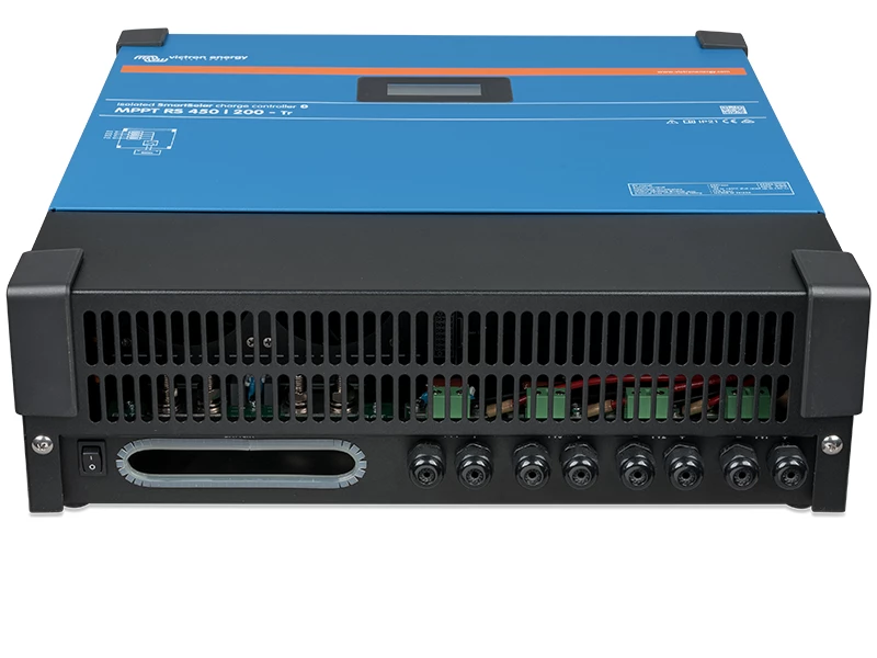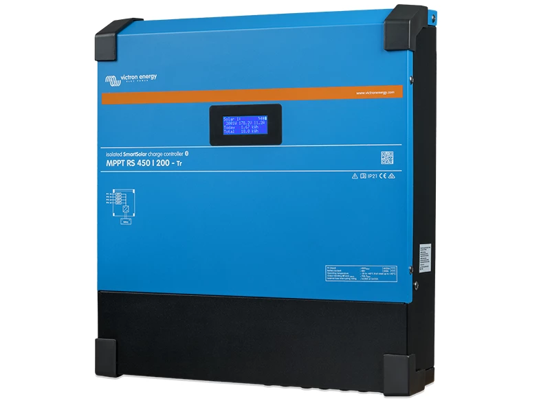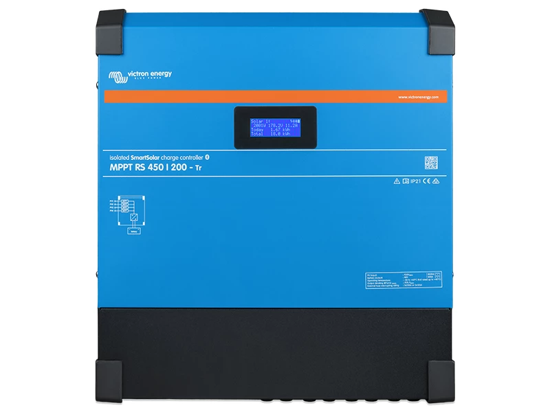 Victron’s Smart Solar MPPT RS 450|100 Isolated is a 48V solar charge controller with a 450 VDC rated PV input and a 200 A rated charge output. It has been specifically designed for use in on-grid and off-grid solar applications where maximum battery charging power is required.