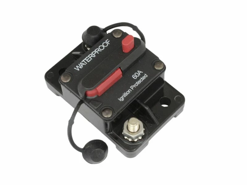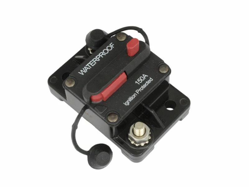 These rugged thermal circuit breakers are designed for the protection and isolation of high current circuits up to 200A. They are fully waterproof to IP67 and ignition protected for safe marine use. The manual trip can be used to switch off and isolate the circuit if required, is easily re-settable and provides an easy-to-see indication that the breaker has tripped. Well suited for use in engine compartments and bilge areas for protection of high current accessory and auxiliary circuits (examples include high current audio and battery charging applications).